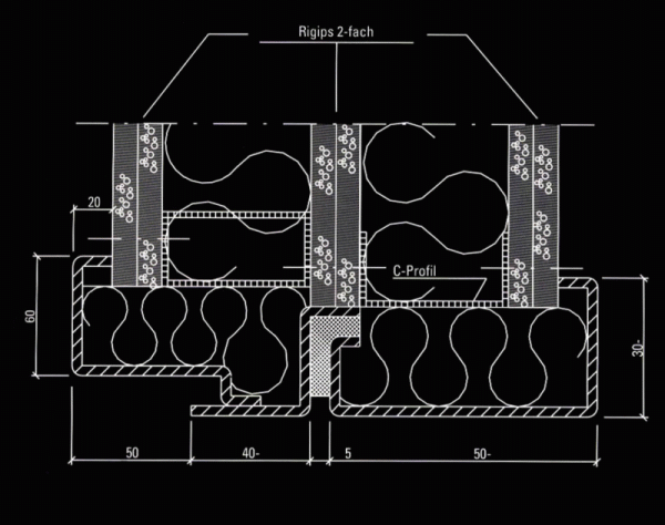 Eckzarge mit akkustisch entkoppelter Gegenzarge für Leichtbauwände
